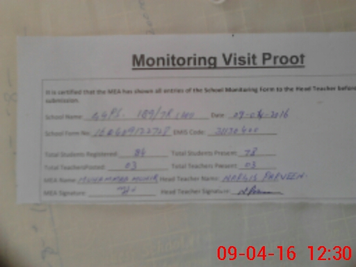 | Attendance Register | Head Teacher | MEA with School | Visit Proof |