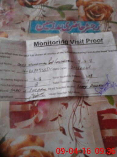 | Attendance Register | Head Teacher | MEA with School | Visit Proof |