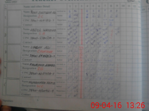 | CNIC | Full Name | Designation | R/C | Absence During Last Calender Month |