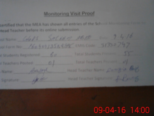 | Name: SO**** NA**** Designation: (School Headmaster's/Headmistress's) PST Phone/Cell Number: 03**** |