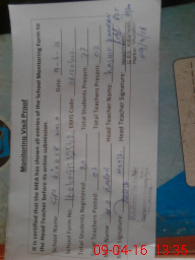 | Attendance Register | Head Teacher | MEA with School | Visit Proof |