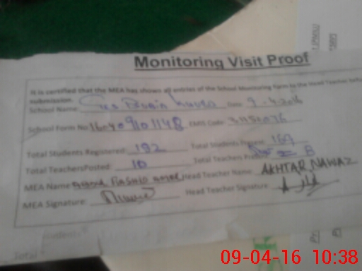 | Certified that this School was Inspected by the Undersigned MEA/DMO Today and the Information Stated Above is as Per Record. | |||||