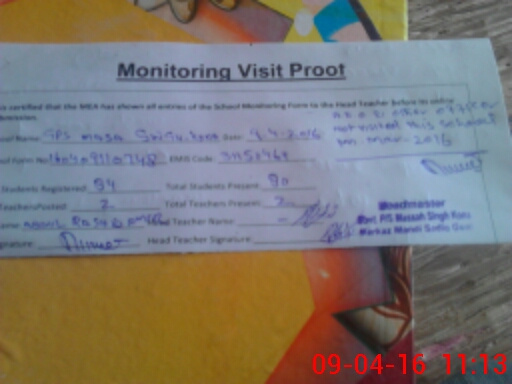 | EMIS Code: 31150464 | Name of School: GPS MASA SINGH KONA | |||