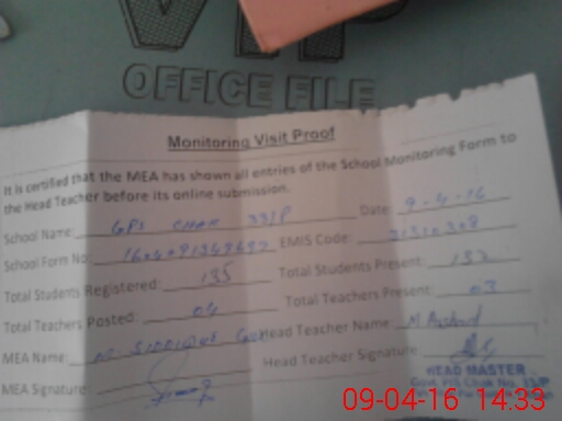 | Attendance Register | Head Teacher | MEA with School | Visit Proof |