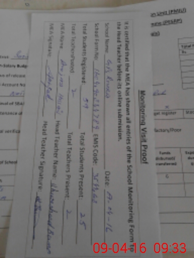 | Attendance Register | Head Teacher | MEA with School | Visit Proof |