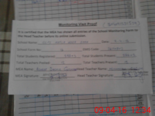 | Attendance Register | Head Teacher | MEA with School | Visit Proof |