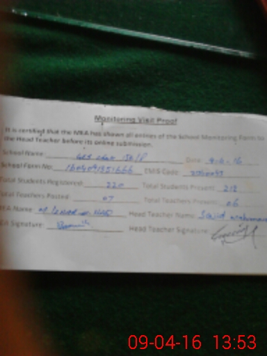 | Attendance Register | Head Teacher | MEA with School | Visit Proof |