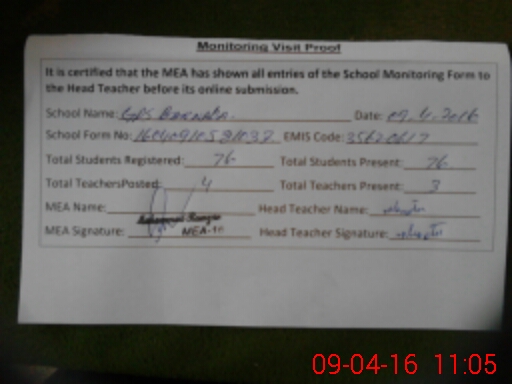| Certified that this School was Inspected by the Undersigned MEA/DMO Today and the Information Stated Above is as Per Record. | |||||