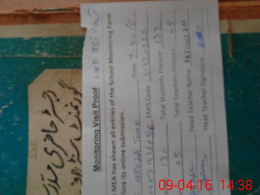 | Attendance Register | Head Teacher | MEA with School | Visit Proof |