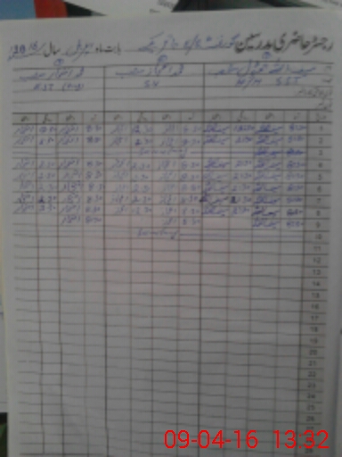 | CNIC | Full Name | Designation | R/C | Absence During Last Calender Month |