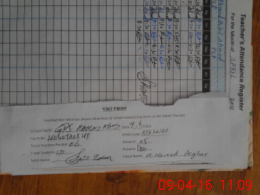 | Attendance Register | Head Teacher | MEA with School | Visit Proof |