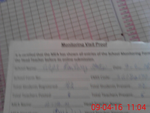 | Attendance Register | Head Teacher | MEA with School | Visit Proof |