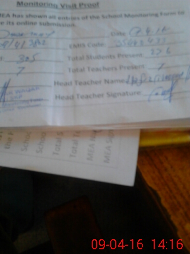 | Attendance Register | Head Teacher | MEA with School | Visit Proof |
