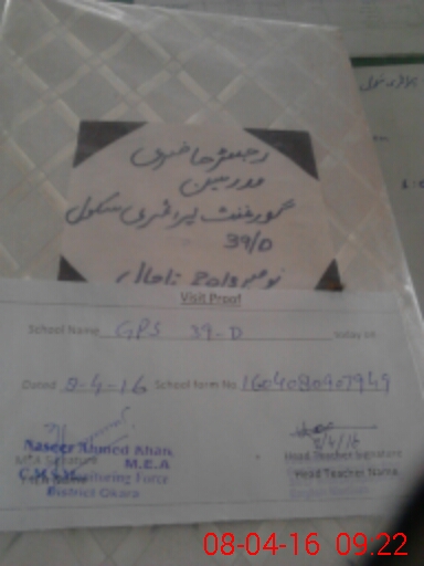 | EMIS Code: 39310446 | Name of School: GPS CHAK NO.39 D | |||