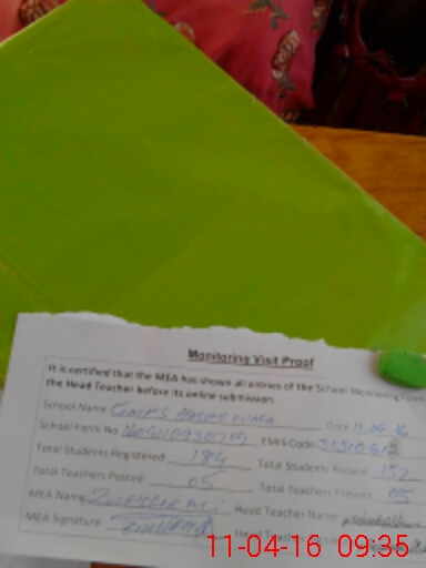 | Attendance Register | Head Teacher | MEA with School | Visit Proof |