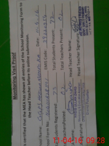 | EMIS Code: 39220354 | Name of School: GGPS HEEMAN MEHROOKA | |||