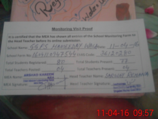 | EMIS Code: 36120280 | Name of School: GGPS HAMEEDAY WALA SHUJABAD DISTT. MULTAN | |||