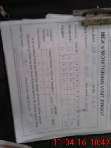 | Monitoring Date: 11-04-2016 | Start Time: 11-04-2016 10:08 AM | End Time: 11-04-2016 10:44 AM | Name of MEA: M.Is**** (S**** 03**** | |