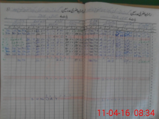 | CNIC | Full Name | Designation | R/C | Absence During Last Calender Month |