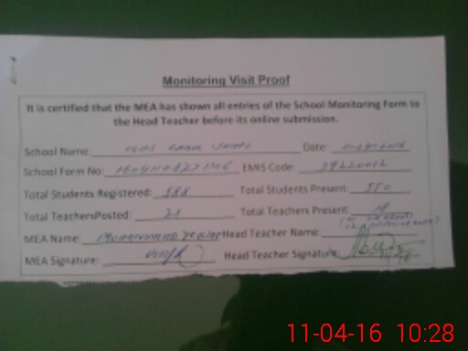 | Certified that this School was Inspected by the Undersigned MEA/DMO Today and the Information Stated Above is as Per Record. | |||||