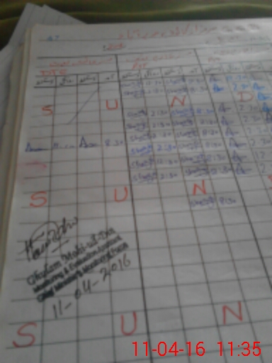 | CNIC | Full Name | Designation | R/C | Absence During Last Calender Month |