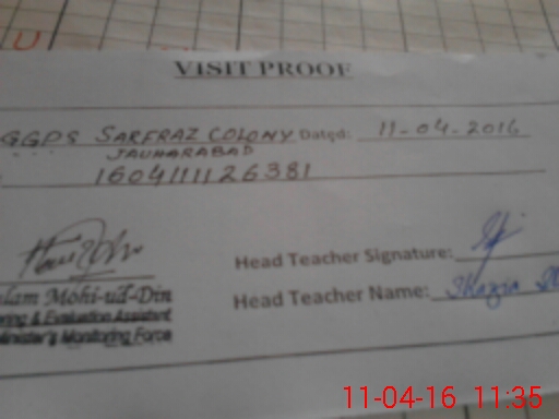 | EMIS Code: 38210646 | Name of School: GGPS SARFRAZ COLONY JAUHARABAD | |||
