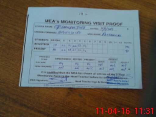 | Attendance Register | Head Teacher | MEA with School | Visit Proof |