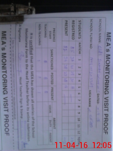 | Monitoring Date: 11-04-2016 | Start Time: 11-04-2016 11:19 AM | End Time: 11-04-2016 12:06 PM | Name of MEA: M.Is**** (S**** 03**** | |
