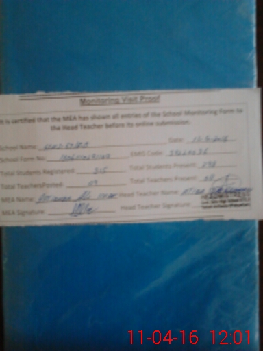 | Certified that this School was Inspected by the Undersigned MEA/DMO Today and the Information Stated Above is as Per Record. | |||||