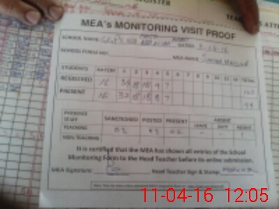 | Attendance Register | Head Teacher | MEA with School | Visit Proof |