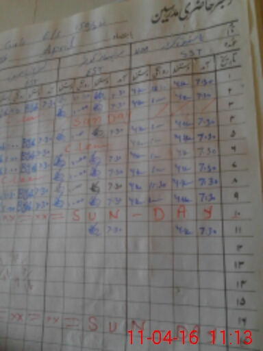 | CNIC | Full Name | Designation | R/C | Absence During Last Calender Month |