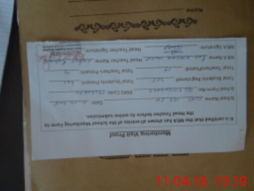 | Attendance Register | Head Teacher | MEA with School | Visit Proof |