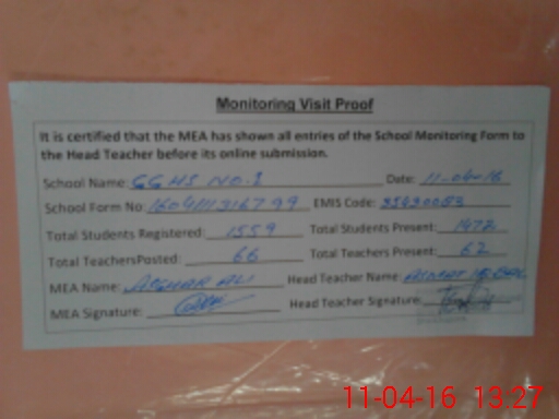 | Certified that this School was Inspected by the Undersigned MEA/DMO Today and the Information Stated Above is as Per Record. | |||||