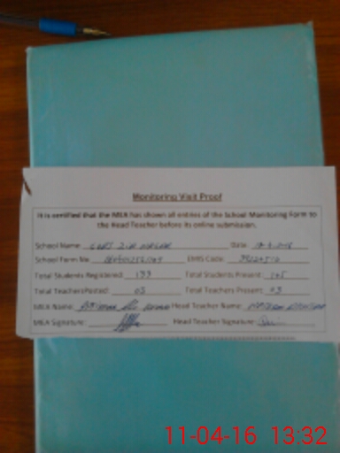 | Attendance Register | Head Teacher | MEA with School | Visit Proof |