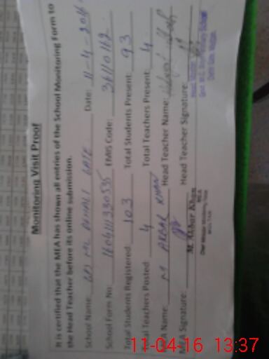 | EMIS Code: 36110162 | Name of School: GPS MC DEHLI GATE MULTAN | |||