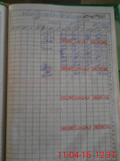 | CNIC | Full Name | Designation | R/C | Absence During Last Calender Month |