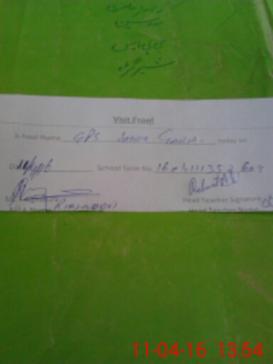 | School Visited by School Health & Nutrition Supervisor (No. of Visits) | 1 | Name1: | M AFZAL | Name2: | |