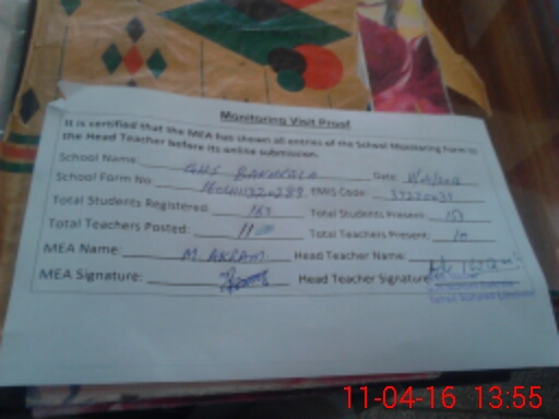 | Attendance Register | Head Teacher | MEA with School | Visit Proof |