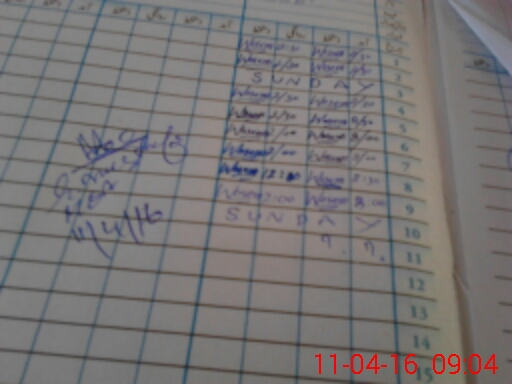 | Monitoring Date: 11-04-2016 | Start Time: 11-04-2016 08:19 AM | End Time: 11-04-2016 09:05 AM | Name of MEA: GH**** MU**** BH**** (R**** | |