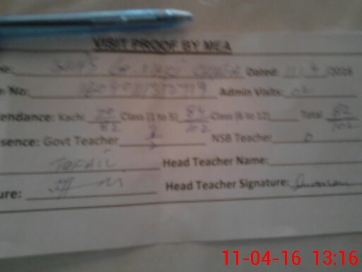| Attendance Register | Head Teacher | MEA with School | Visit Proof |