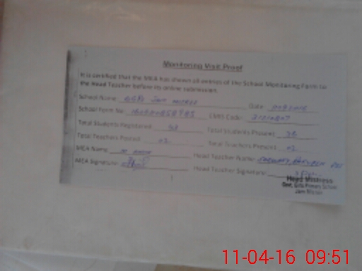 | Attendance Register | Head Teacher | MEA with School | Visit Proof |