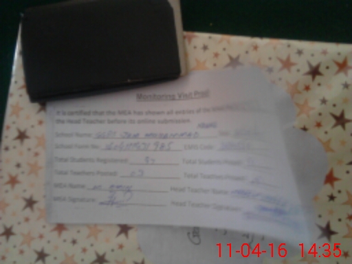 | Attendance Register | Head Teacher | MEA with School | Visit Proof |