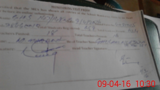 | Attendance Register | Head Teacher | MEA with School | Visit Proof |