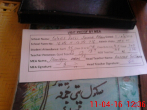 | Attendance Register | Head Teacher | MEA with School | Visit Proof |