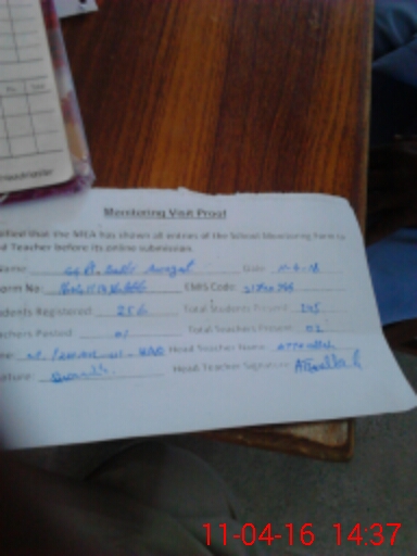 | Monitoring Date: 11-04-2016 | Start Time: 11-04-2016 02:09 PM | End Time: 11-04-2016 02:38 PM | Name of MEA: Mu**** Iz**** UlHa**** | |