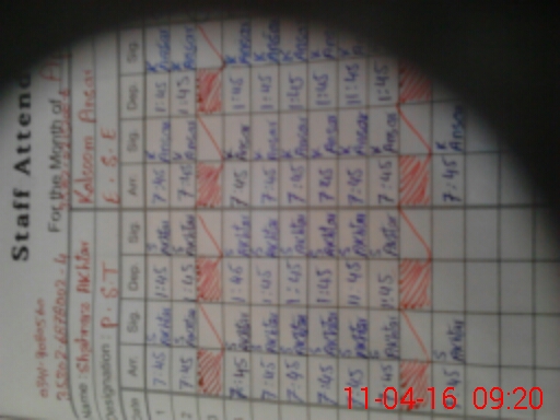 | Monitoring Date: 11-04-2016 | Start Time: 11-04-2016 09:07 AM | End Time: 11-04-2016 09:21 AM | Name of MEA: MU**** YO**** (R**** | |