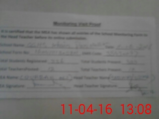 | Attendance Register | Head Teacher | MEA with School | Visit Proof |