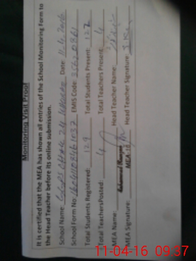 | Certified that this School was Inspected by the Undersigned MEA/DMO Today and the Information Stated Above is as Per Record. | |||||