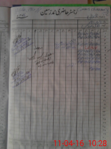 | CNIC | Full Name | Designation | R/C | Absence During Last Calender Month |
