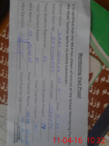 | Certified that this School was Inspected by the Undersigned MEA/DMO Today and the Information Stated Above is as Per Record. | |||||